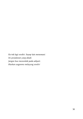 Ku tak lagi sendiri. Sayap lain menemani. Ini perjalanan yang abadi. Jangan kau menunduk pada adipati. Biarkan anganmu melayang sendiri 30