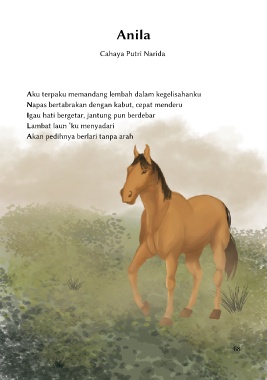 Anila Cahaya Putri Narida Aku terpaku memandang lembah dalam kegelisahanku Napas bertabrakan dengan kabut, cepat menderu Igau hati bergetar, jantung pun berdebar Lambat laun ‘ku menyadari Akan pedihnya berlari tanpa arah 68