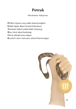 Petruk Hendrawan Adiyatma Perihal impian yang selalu kuperjuangkan Entah kapan akan menjadi kenyataan Tertanam tekad untuk selalu berjuang Rasa takut akan kuterjang Untuk sebuah masa depan Kuyakini akan mencapai sebuah kemenangan 81