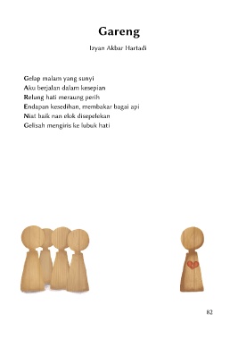 Gareng Izyan Akbar Hartadi Gelap malam yang sunyi Aku berjalan dalam kesepian Relung hati meraung perih Endapan kesedihan, membakar bagai api Niat baik nan elok disepelekan Gelisah mengiris ke lubuk hati 82