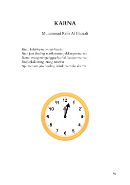 KARNA Muhammad Raffa Al Ghozali Kisah kehidupan belum dimulai Arah jam dinding masih menunjukkan permainan Ramai orang menganggap harfiah kata permainan Naif sekali orang-orang tersebut Api menanti jam dinding untuk memulai aksinya 59
