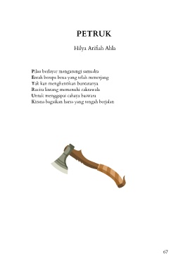 PETRUK Hilya Arifiah Ahla Pilau berlayar mengarungi samudra Entah berapa bena yang telah menerjang Tak kan menghentikan buntaranya Rucita lintang memenuhi cakrawala Untuk menggapai cahaya baswara Kirana bagaikan harsa yang tengah berjalan 67